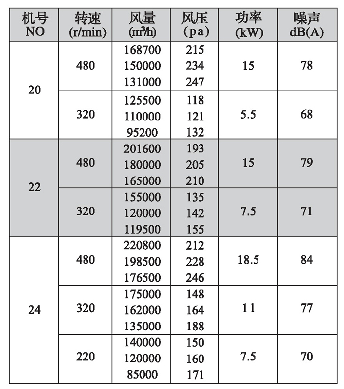 DWT-I型(軸流式)續表
