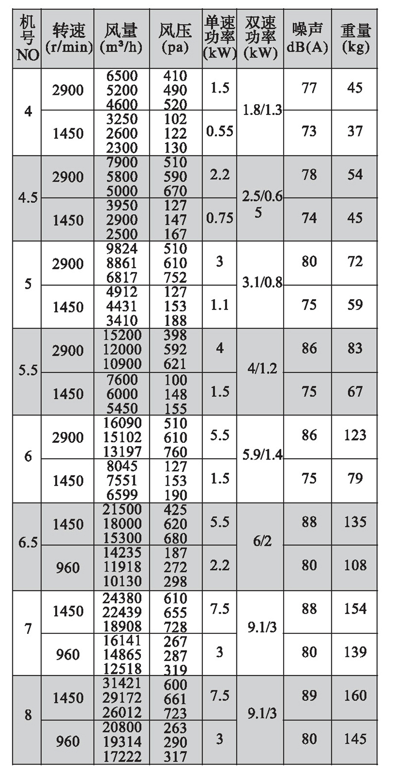 注:雙速風機重量參考同號中高速風機的重量。