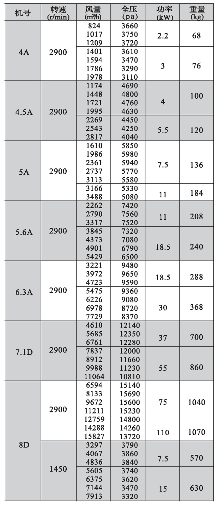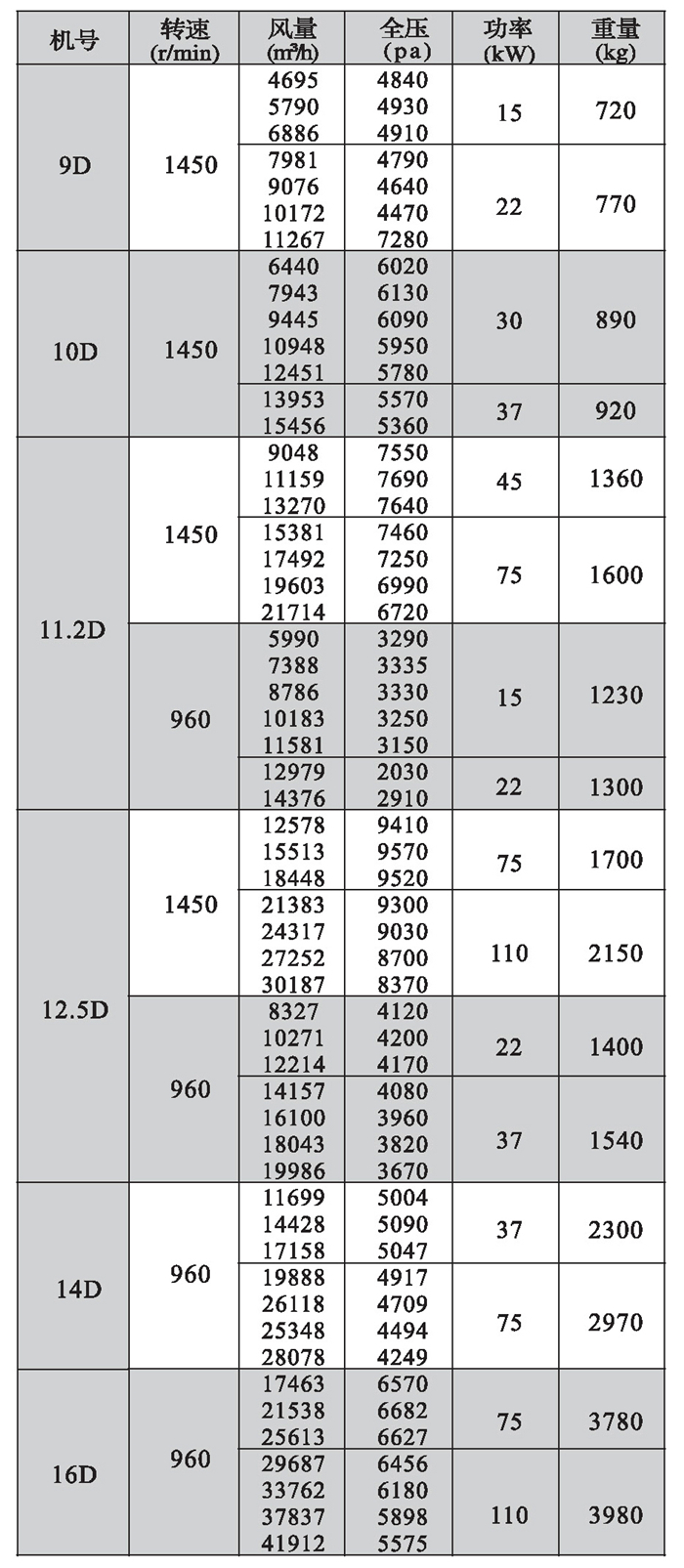 9-19離心風(fēng)機(jī)性能參數(shù)表