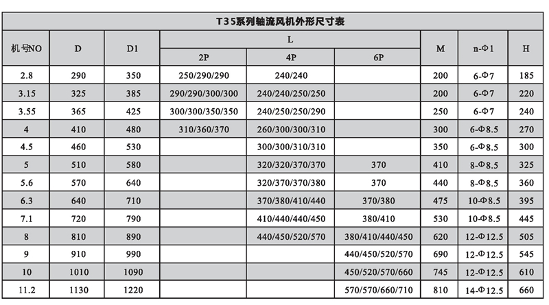 注:FT35為防腐型軸流風機,用于輸送有腐蝕性的氣體;